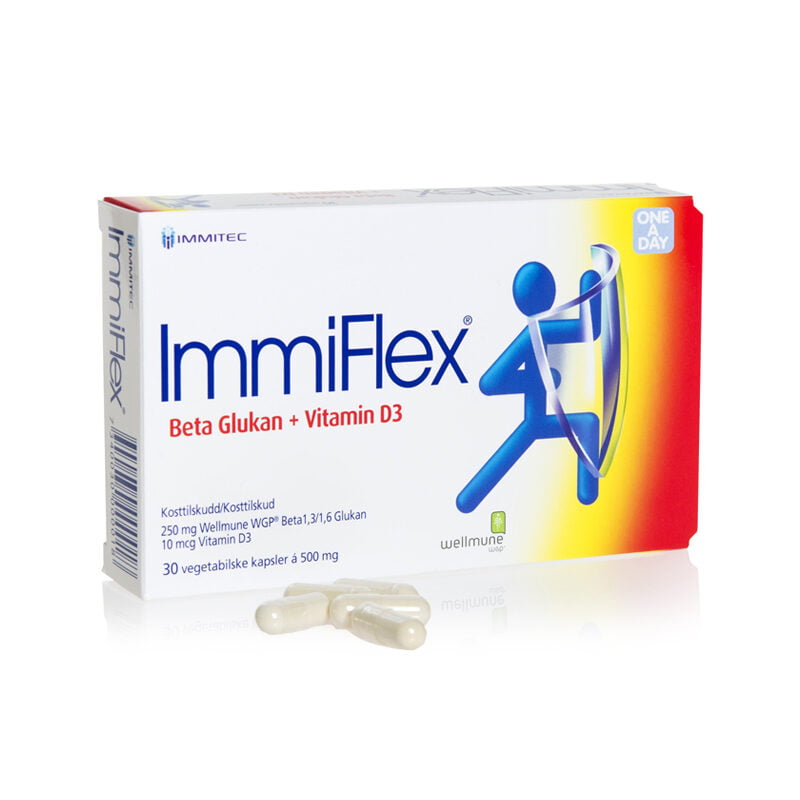ImmiFlex® med Wellmune WGP® Betaglukaner og vitamin D3 skal aktivere og beskytte immunforsvaret mot blant annet influensa, forkjølelse, omgangssyke m.m. ImmiFlex® er det best dokumenterte Betaglukan-produktet på markedet, med patenterte Wellmune WGP® Betaglukaner fra celleveggen i bakegjær. ImmiFlex® inneholder Wellmune WGP® som er beskyttet av mer enn 40 patenter, og hvor mer enn 1,5 milliarder kroner er blitt investert i utvikling, forskning og kliniske studier for å kartlegge hvordan produktet virker.