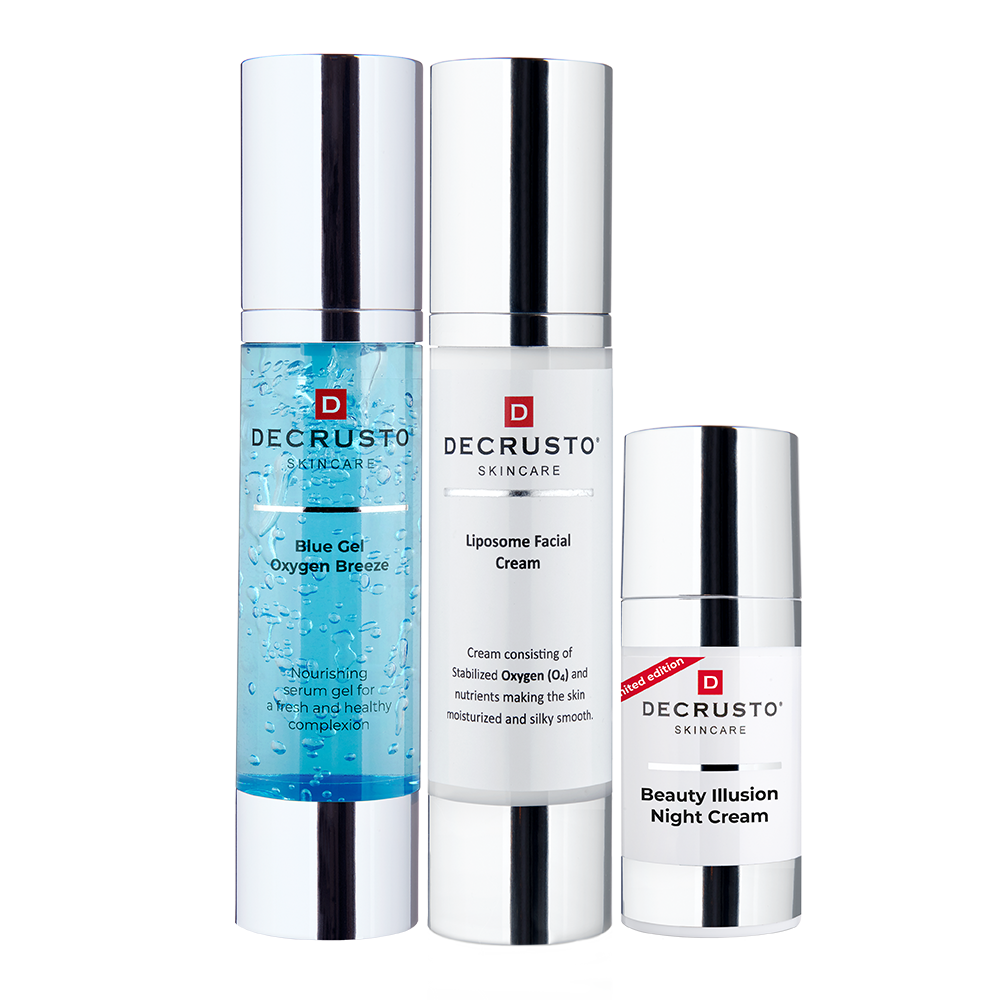 Serum og krem i 50 ml størrelse, kombinert med en pleiende nattkrem (15 ml), som bidrar til å gjøre huden fastere, glattere og mykere.